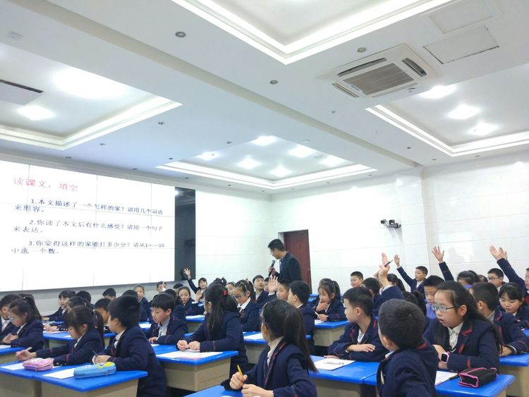 在周奇老师的课堂上积极思考、踊跃发言的学生们