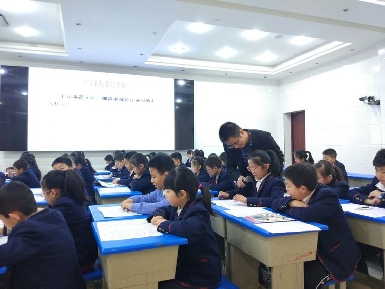 今天的现场教学,周奇老师为我们带来的是说明文与散文的对比。给小学五年级同学上语文文体教学课,本能反应也觉得会是非常无聊枯燥的课吧。但是,在周奇老师的手中,却变成了异常活跃积极的课堂,同学们参与性极高,一直在积极思考、积极回答问题,以至于在课堂结束时,周奇老师对学生们说“孩子们,那我们这节课到此结束。”学生们还依依不舍的不愿离开,甚至还有孩子发出“啊~这么快呀。”我想,一节成功教学课堂就是上课到学生不想下课的境界吧,周奇老师做到了。