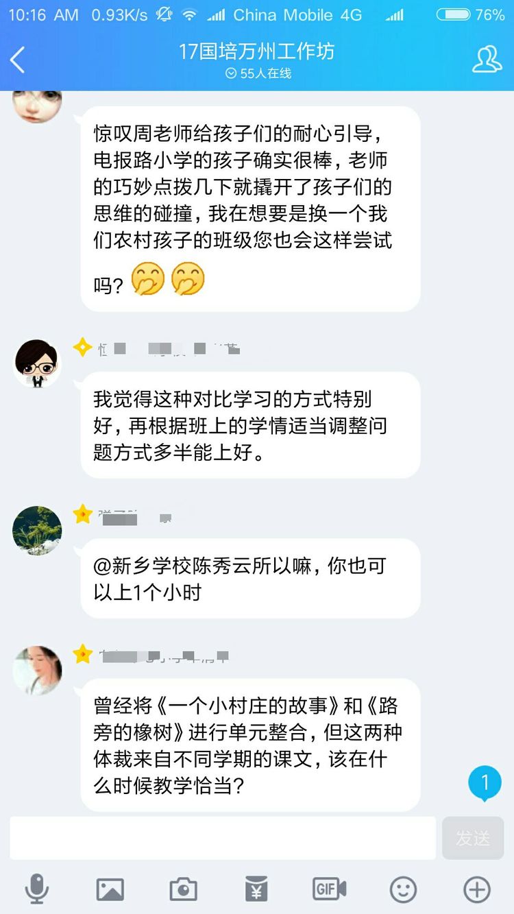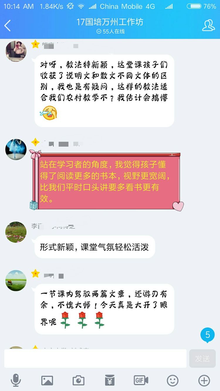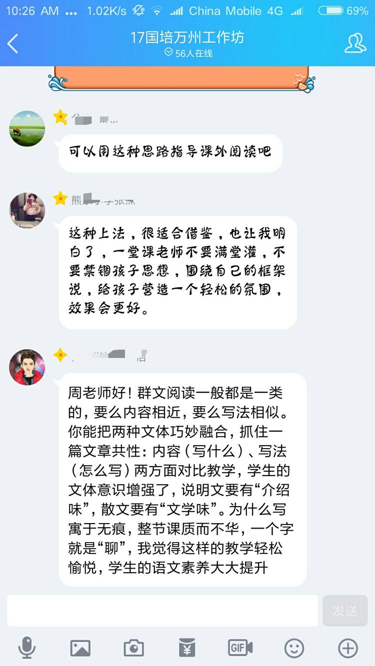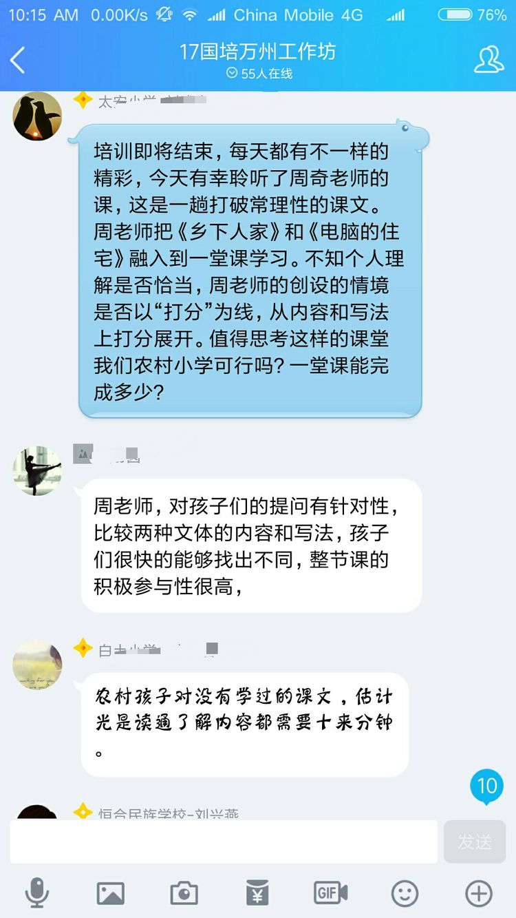 当然不是啦,认真参加培训的老师们怎么舍得玩手机呢。其实是周奇老师让大家对现场教学进行点评,让每一位老师将点评文字发在QQ群里,然后对参训老师一一解答疑问。以下分享老师们的点评