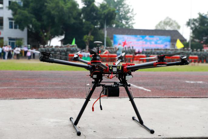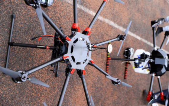 (组装好的大疆S1000+航拍无人机和零创GY-1植保无人机)