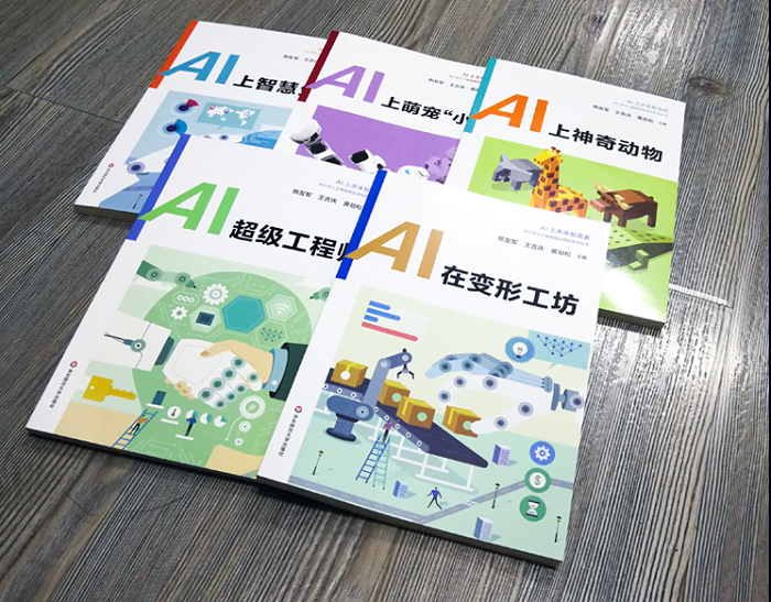 这套《人工智能实验教材》由河南人民出版社出版,今年7月中旬举行首发仪式,号称是“首套K12全学段全系列”教材,分为: