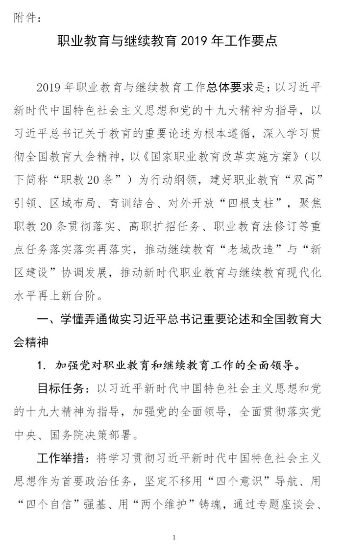 经部领导同意,现将《职业教育与继续教育2019年工作要点》印发给你们,供工作中参考。