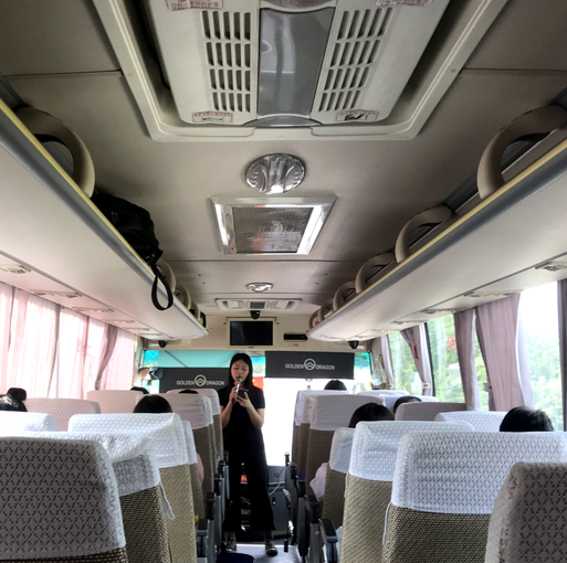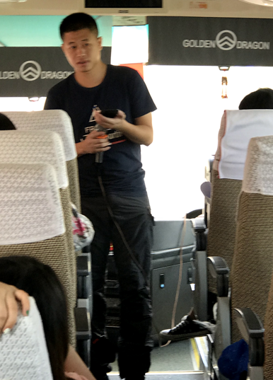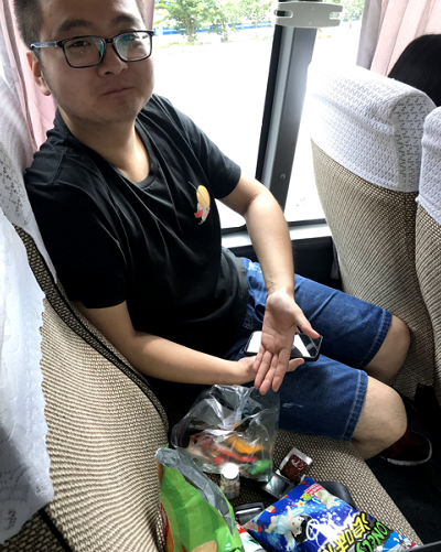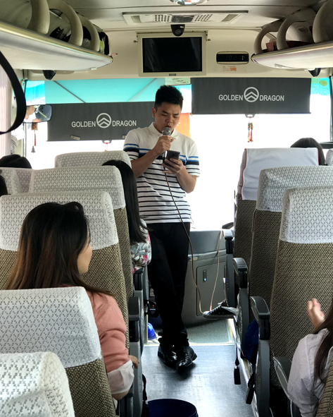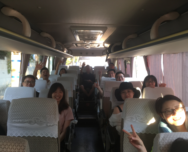 在大巴车上,我们有说有笑,
