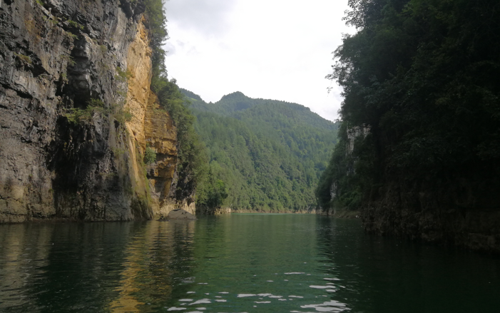 依山榜水的景区,当然淌水路是不可避免的,清凉的溪水有时没过脚踝,有时直达膝盖,脚下的鹅卵石并没有规矩的排成一排,所以你不知道下一步是否会有危险,会不会一不小心摔进水里。