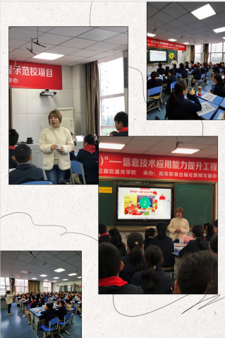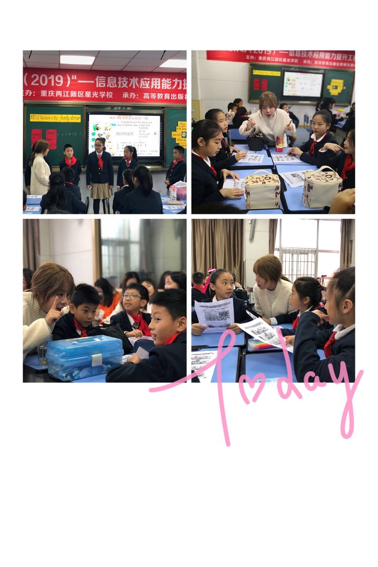 秋光散尽寒意浓,恰逢今日已立冬。由重庆两江新区星光学校主办,高等教育出版社教师发展中心承办的“国培计划(2019) ——信息技术应用能力提升工程示范校项目”继续在我校展开,今天的培训在来自成都市双流九江小学江姝洁老师的一堂英语课中拉开了帷幕。