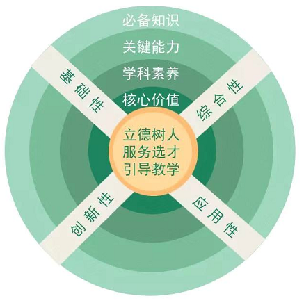 高考评价体系由“一核”“四层”“四翼”组成,其中,“一核”是高考的核心功能,即“立德树人、服务选才、引导教学”,回答“为什么考”的问题;“四层”为高考的考查内容,即“核心价值、学科素养、关键能力、必备知识”,回答“考什么”的问题;“四翼”为高考的考查要求,即“基础性、综合性、应用性、创新性”,回答“怎么考”的问题。